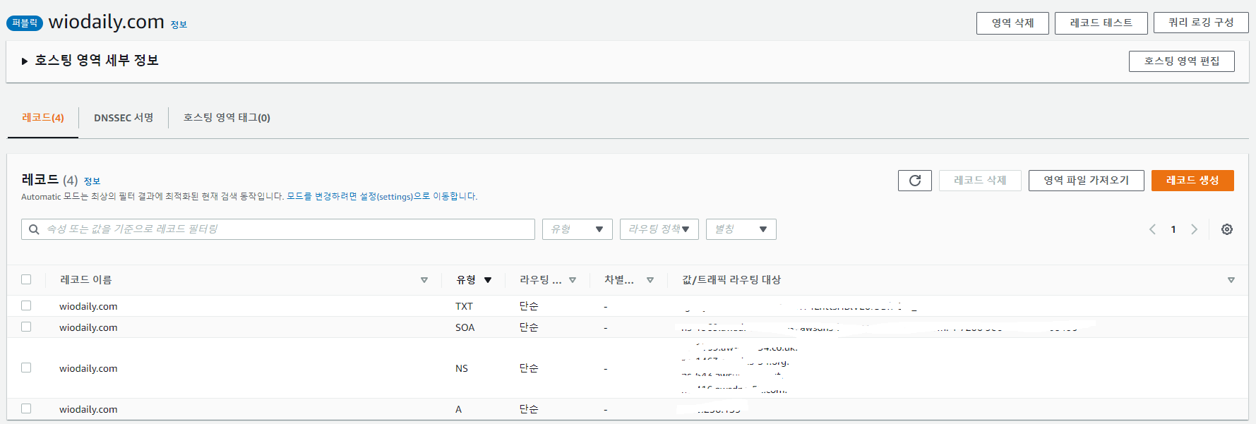 자! 그럼 본론으로 돌아와서 AWS에서 구매한 내 도메인을