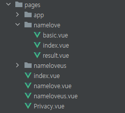 - 그 폴더명과 같은 이름의 vue 파일 생성 (namelove.vue)