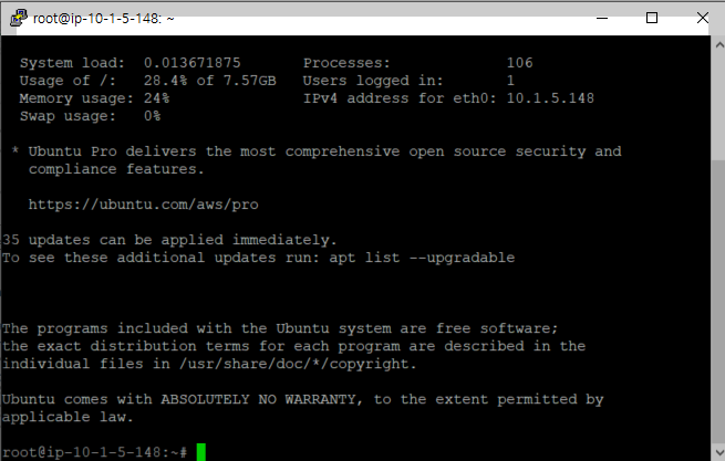 성공적으로 Ubuntu OS를 설치한 서버에 접근하는 것을 확인했습니다!~ ㅎㅎ
