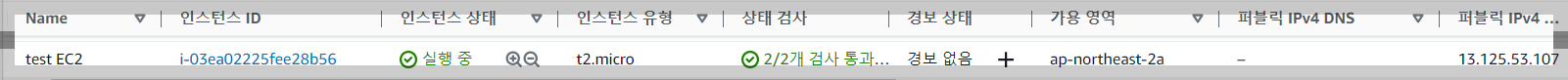 수 분을 기다려주시면 성공적으로 EC2 인스턴스가 실행중인 상태를 확인하실 수 있습니다.