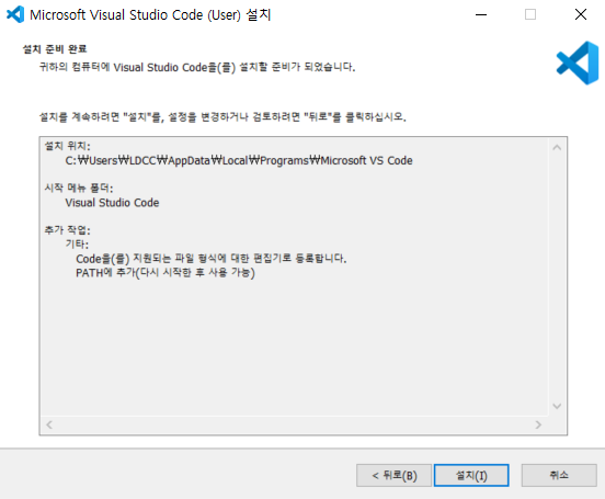 6. 자 앞에서 설정한 내용을 확인하고 바로! 설치해줍니다!!
